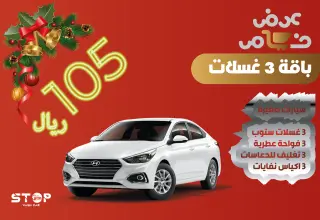 - غسيل الهيكل الخارجي للسيارة بالماء ومواد التلميع والكفرات.